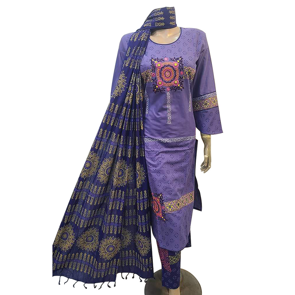 সম্পন্ন আড়ং কটন কাপড়ের রেডি থ্রি পিস এমব্রয়ডারি করা ডলার ওয়ার্ক করা কাপড় কোয়ালিটি হান্ড্রেড পার্সেন্ট ভালো রং করস গ্যারান্টি