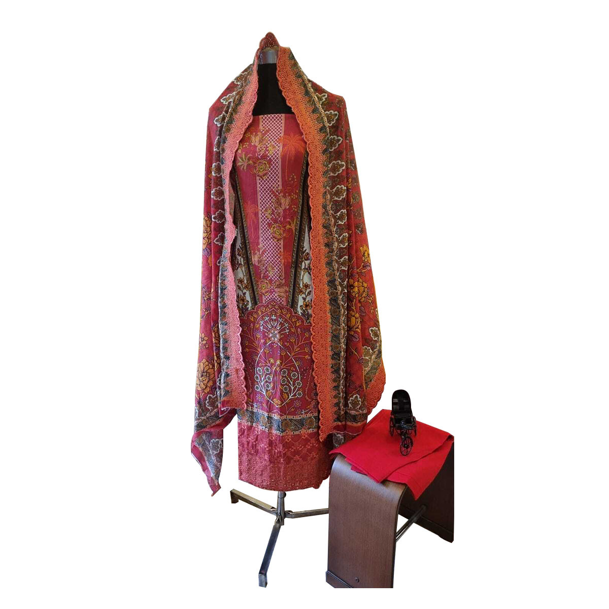 Chickenkari unstitched cotton three piece